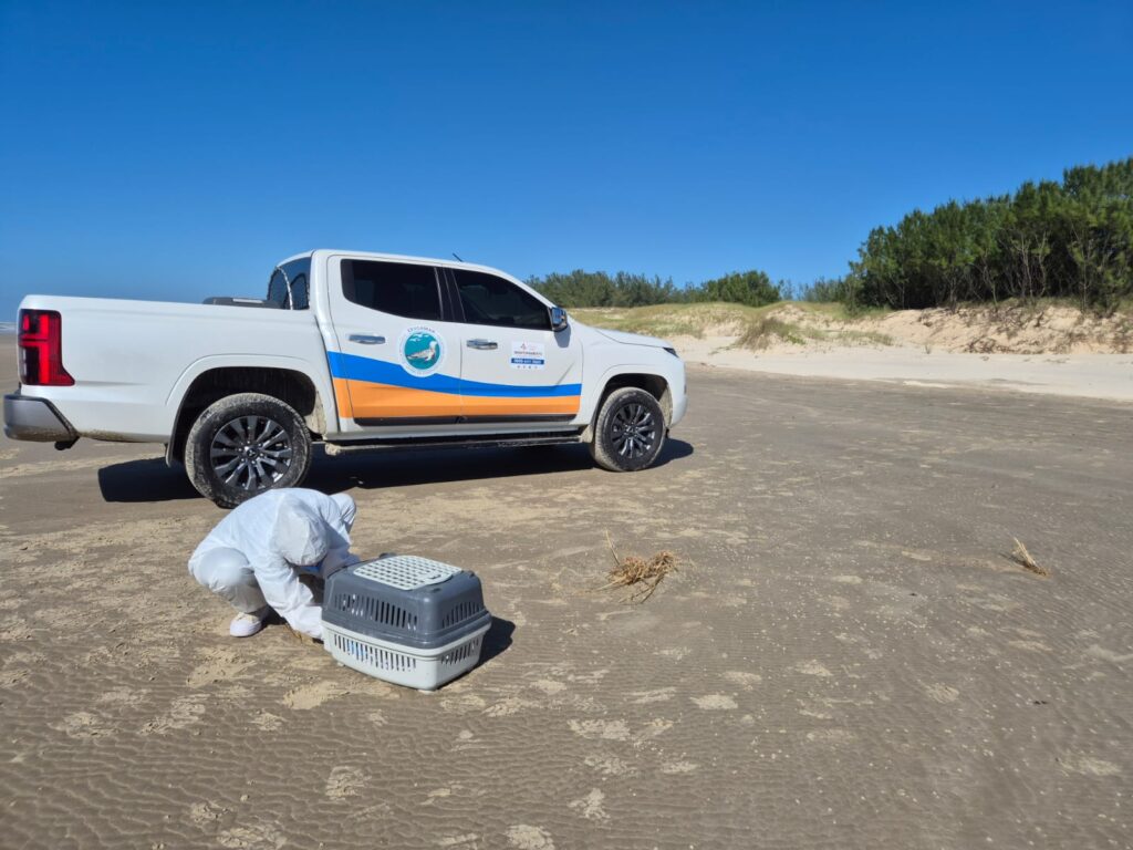 O resgate foi feito pela equipe de campo durante a execução do Projeto de Monitoramento de Praias da Bacia de Pelotas (PMP-BP).